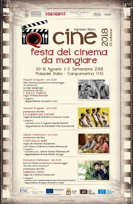 Si alza il sipario questa sera sulla settima edizione di “Qcine”, la festa del cinema da mangiare. Riflettori puntati sul connubio tra cinema e gastronomia in uno splendido contesto turistico come quello di Campomarino. Una vera e propria rassegna cinematografica di film d’autore a sfondo enogastronomico con la partecipazione di attori, registi e personaggi del mondo del cinema, che andrà avanti sino a domenica.