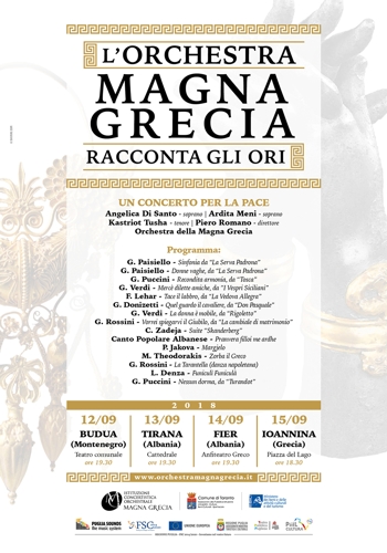 “Gli ori della Magna Grecia in…Albania, Grecia e Montenegro”. Quattro date con l’Istituzione Concertistico Orchestrale della Magna Grecia che promuove la musica, le