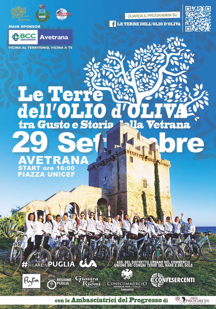 L’evento si aggancia ad un progetto che già la Proloco di Avetrana, l’Amministrazione Comunale, le associazioni dei produttori locali, la Cia Area Due Mari, il Gal e il Distretto Urbano del Commercio, cercheranno di portare avanti sviluppando delle iniziative di carattere promozionale per il territorio che siano da motore per una crescita sostenibile del settore oleario ed agricolo in generale, accrescendo allo stesso tempo la conoscenza delle tipicità ed eccellenze locali verso nuovi target turistici.