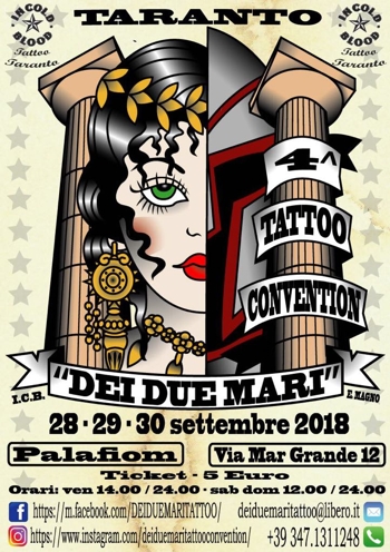 È partita ieri l’edizione 2018 dell’evento promosso dall’ass. culturale Art Music e lo studio di tatoo e piercing di Taranto “In cold blood” nel palazzetto sportivo. Circa 60 stand di tattoo artist e piercer provenienti da tutta Italia costituiranno l’attrattiva principale della manifestazione.
