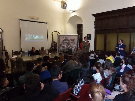 Personale specializzato del Comando Militare Esercito “PUGLIA”, (CME) agli ordini del Generale di Brigata Mauro Prezioso è stato accolto dal sindaco di Latiano Cosimo Maiorano presso il salone dei congressi del Palazzo di Città, per un incontro con gli studenti delle classi terze dell’istituto comprensivo “Latiano".