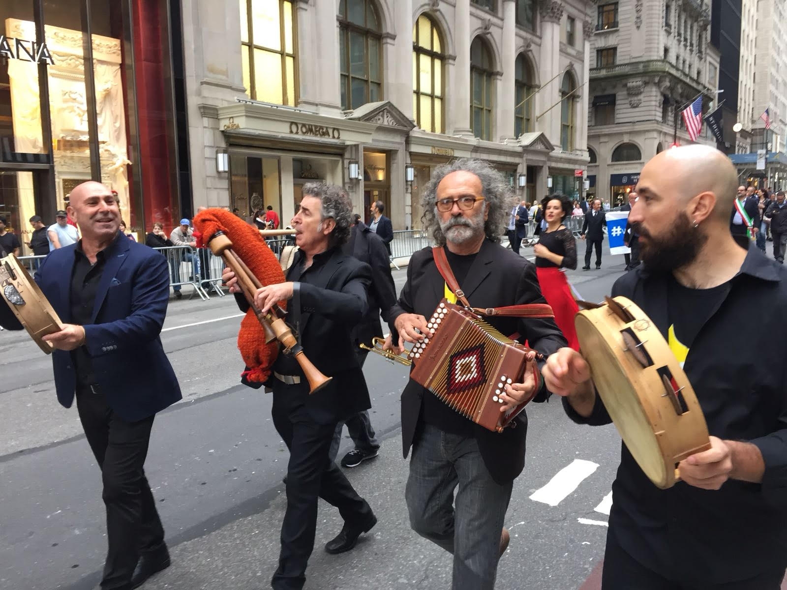 I musicisti e i ballerini dell’Orchestra Popolare, dopo il successo alle Olimpiadi invernali di Seoul e alla festa dei cittadini del presidente della Repubblica federale tedesca, sono sbarcati per la prima volta al Columbus Day. Icona culturale perfetta per celebrare la rinascita della Puglia, dei luoghi incontaminati, dell’arte e dell’innovazione, La Notte della Taranta, per festeggiare il compleanno dell’America ha proposto uno spettacolo ricco di emozioni con le potenti ed esplosive pizziche della tradizione salentina che hanno ormai varcato i confini nazionali conquistando il pubblico e i turisti. Diretti dal maestro Daniele Durante voleranno a New York il trombettista Frank Nemola, Roberto Chiga (tamburello) Antonio Amato (voce e tamburello) e Nico Berardi (fiati). Una marching band accompagnata dai danzatori Laura Boccadamo, Lavinia Ottolini, Cristina Frassanito, Andrea Caracuta, Marco Martano e Fabrizio Nigro. I tamburelli colorati con le “zagareddrhe” tricolore e la t-shirt con scritto I Love Puglia e #WeAreinPuglia hanno lanciato un messaggio di condivisione della bellezza di una regione pronta ad accogliere i turisti americani.