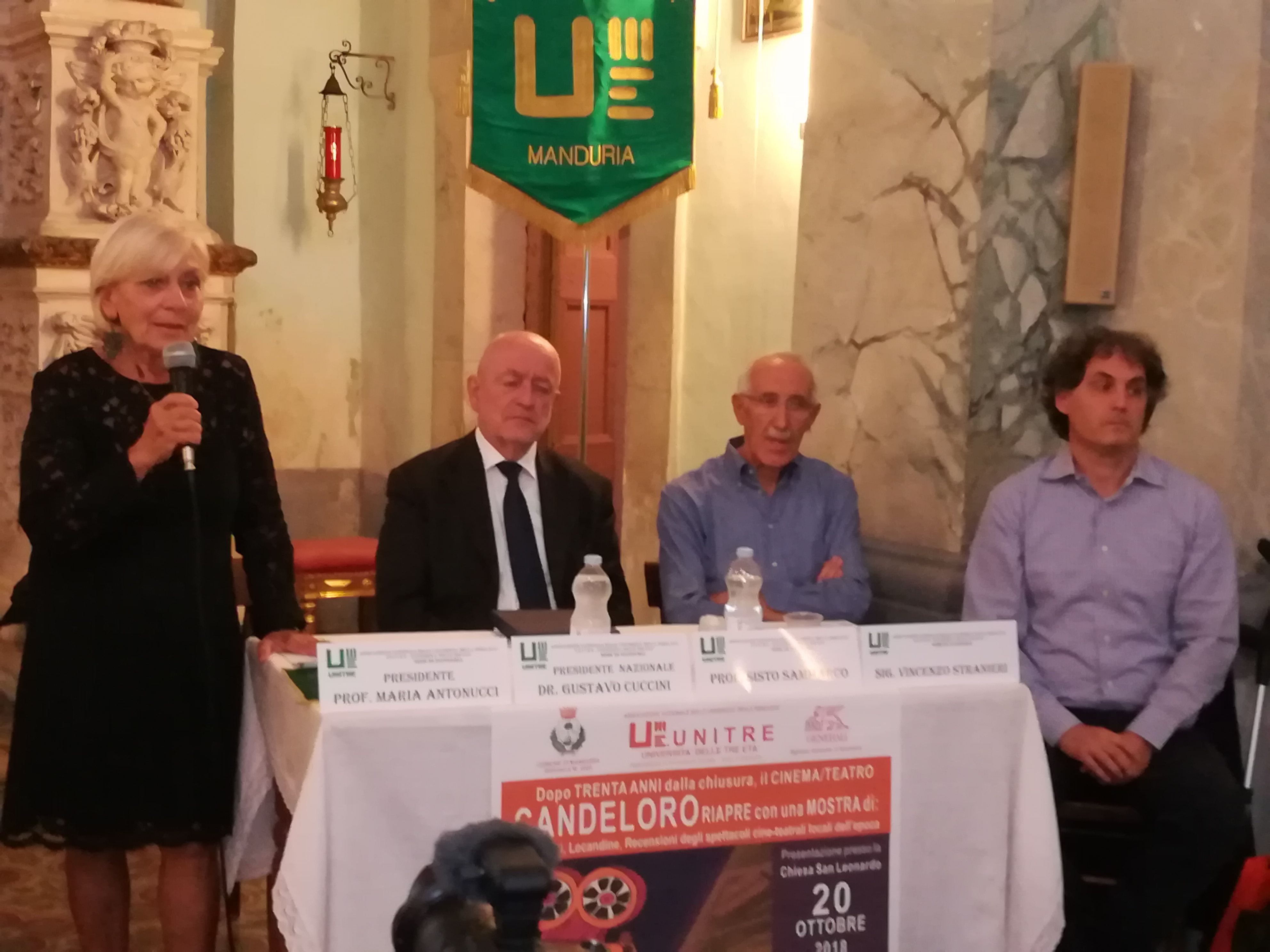 La mostra è stata presentata l’altro ieri sera nella chiesa di San Leonardo, insufficiente a contenere la curiosità, mista a nostalgia, di tante generazioni di over 40. La cerimonia è stata aperta da un intervento della presidente della sezione di Manduria di UniTre, Maria Antonucci Rochira. Poi è stata la volta di Vincenzo Stranieri, anch’egli socio UniTre, che ha proposto una ricca e dettagliata relazione sulle vicende, caratterizzate da alti e bassi, dei cinema e dei teatri manduriani, dal ‘900 e sino al 2012. Una ricostruzione che è potuta avvenire anche grazie alla notevole documentazione custodita dalla biblioteca “Marco Gatti”: giornali d’epoca, nonchè locandine e manifesti di spettacoli ed eventi in genere.