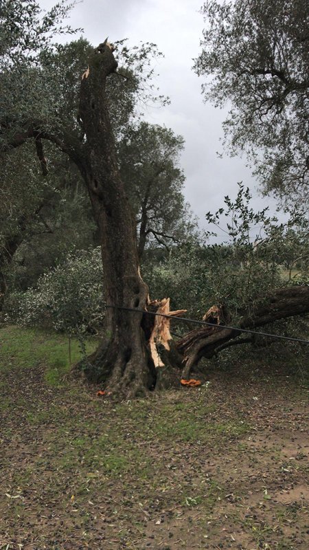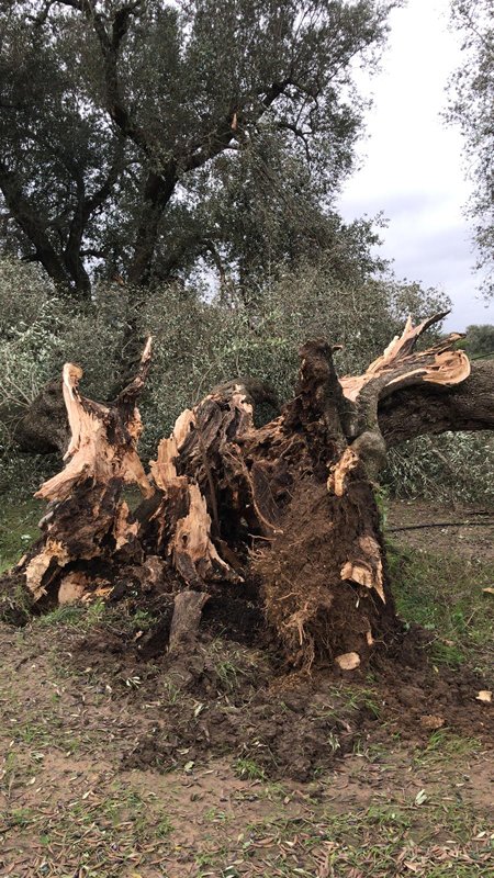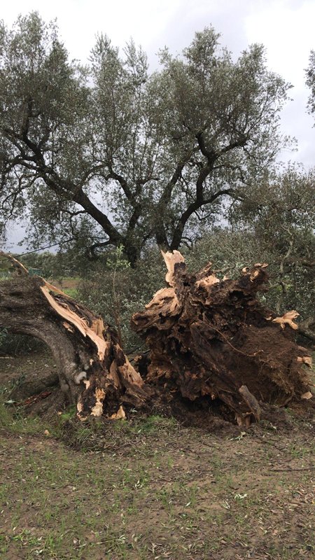 “Il quadro è apocalittico. Vedere alberi di dimensioni notevoli sradicati e allettati e le campagne coperte da un manto di olive è desolante”, denuncia il presidente di Coldiretti Brindisi, Filippo De Miccolis. “E’ un disastro naturale di dimensioni incalcolabili che ha colpito principalmente Apani, Brindisi, Latiano, Oria, Francavilla e Torre Santa Susanna – aggiunge il presidente De Miccolis – per cui i nostri uffici si sono immediatamente attivati per le verifiche in campo. Chiederemo all’assessorato regionale all’Agricoltura di attivare le procedure per l’accertamento del danno di inusitata gravità e richiedere lo stato di calamità naturale, sburocratizzando il più possibile le procedure per ristorare tempestivamente gli agricoltori”.
