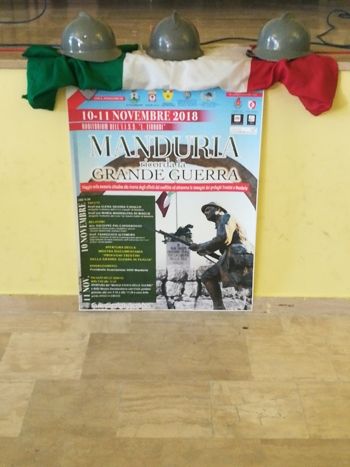 Circa 5mila militari della provincia di Taranto persero la vita durante la Grande Guerra. Di questi, stando alla lapide apposta nel municipio della città messapica, 140 sono manduriani.