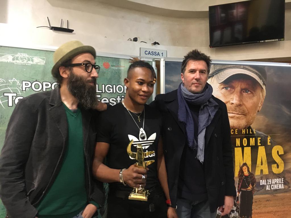 Wisdom Onoghemhenosen, protagonista del cortometraggio “Meshack”, vince il premio “miglior attore” al “Popoli e Religioni - Terni Film Festival”. Il film, che nasce da un’idea di Popularia Onlus e Aps cinemEtic, è il frutto di un progetto formativo dal titolo “L’arte cinematografica per l’integrazione culturale” che, attraverso laboratori ed incontri con professionisti del settore cinematografico, ha coinvolto gli alunni del Liceo “De Sanctis-Galilei” e gli ospiti dello SPRAR di Manduria. Approdo del progetto sono stati, dunque, la scrittura e la realizzazione collettiva del cortometraggio “Meshack”. Il premio ricevuto dal bravissimo attore nigeriano Wisdom, che con la sua spontaneità e grande sensibilità ha raccontato la sua odissea verso l’Italia ed il suo riscatto personale, è anche un bellissimo riconoscimento che coinvolge tutti coloro che hanno contribuito alla realizzazione dell’opera. Nel corso della cerimonia, che si è svolta domenica 18 novembre, Wisdom ha ricevuto il premio dalle mani di Guglielmo Poggi, protagonista con Castellitto del film “Il tuttofare”. Il cortometraggio è stato realizzato grazie al sostegno economico di Ambito Territoriale Taranto 7, Liceo Classico-Scientifico “De Sanctis-Galilei” di Manduria, Coop. Sociale Rinascita e Aps cinemEtic.