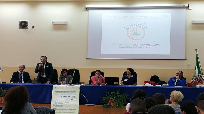Sport e disabilità: un binomio possibile. L’istituto “F.Calasso” di Lecce, scuola secondaria superiore capofila della rete regionale LISS di Puglia, attraverso il dirigente Mario Portaccio, ha subito accolto il progetto per l’aggiornamento dei docenti sul Baskin come strumento per includere gli alunni diversamente abili nelle attività sportive, abbattendo pregiudizi e barriere. Ma cos’è il baskin? Uno sport nato a Cremona, in una scuola media, dall’idea, dalla tenacia e dall’entusiasmo di un genitore di una ragazza disabile ed un docente di educazione fisica.