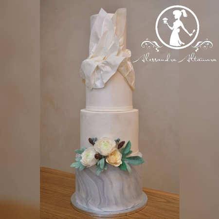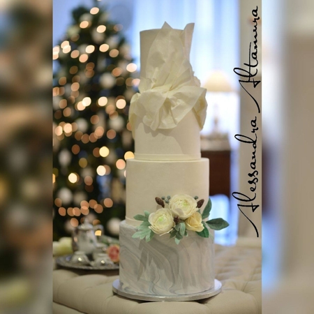 Ebbene, come potete ammirare dalle foto a corredo dell’articolo, Alessandra Altamura ha creato, per l’occasione, una wedding cake di quattro piani.