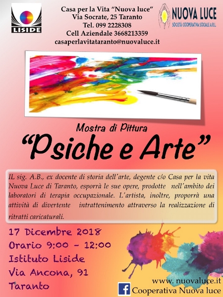 Si chiama “Psiche e Arte” l’evento organizzato dalla Casa per la Vita di Taranto Nuova luce e dall’istituto di istruzione secondaria superiore Liside di Taranto, diretto dal professor Salvatore Marzo.