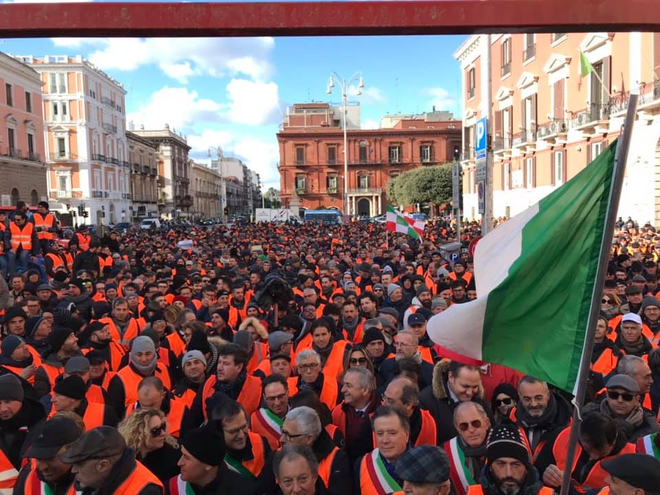 Tutto il resto del mondo agricolo, si è dato appuntamento a Bari, questa mattina, per una grande manifestazione unitaria. Nel capoluogo barese, in piazza Prefettura, accanto ai gilet arancioni ci sono anche Cgil, Cisl, Uil. Il fronte della protesta si allarga giorno dopo giorno: anche i Comuni pugliesi, rappresentati dall’Anci, sono con i gilet arancioni nella battaglia per ottenere maggiore attenzione verso l’agricoltura e l’olivicoltura pugliese.