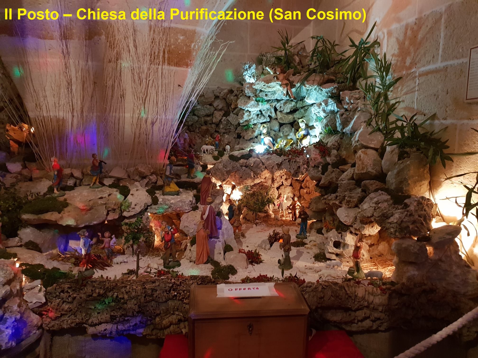 Presepe rupestre, maestoso e ben organizzato. Caratteristica è la fontana situata al centro dell’opera presepiale.