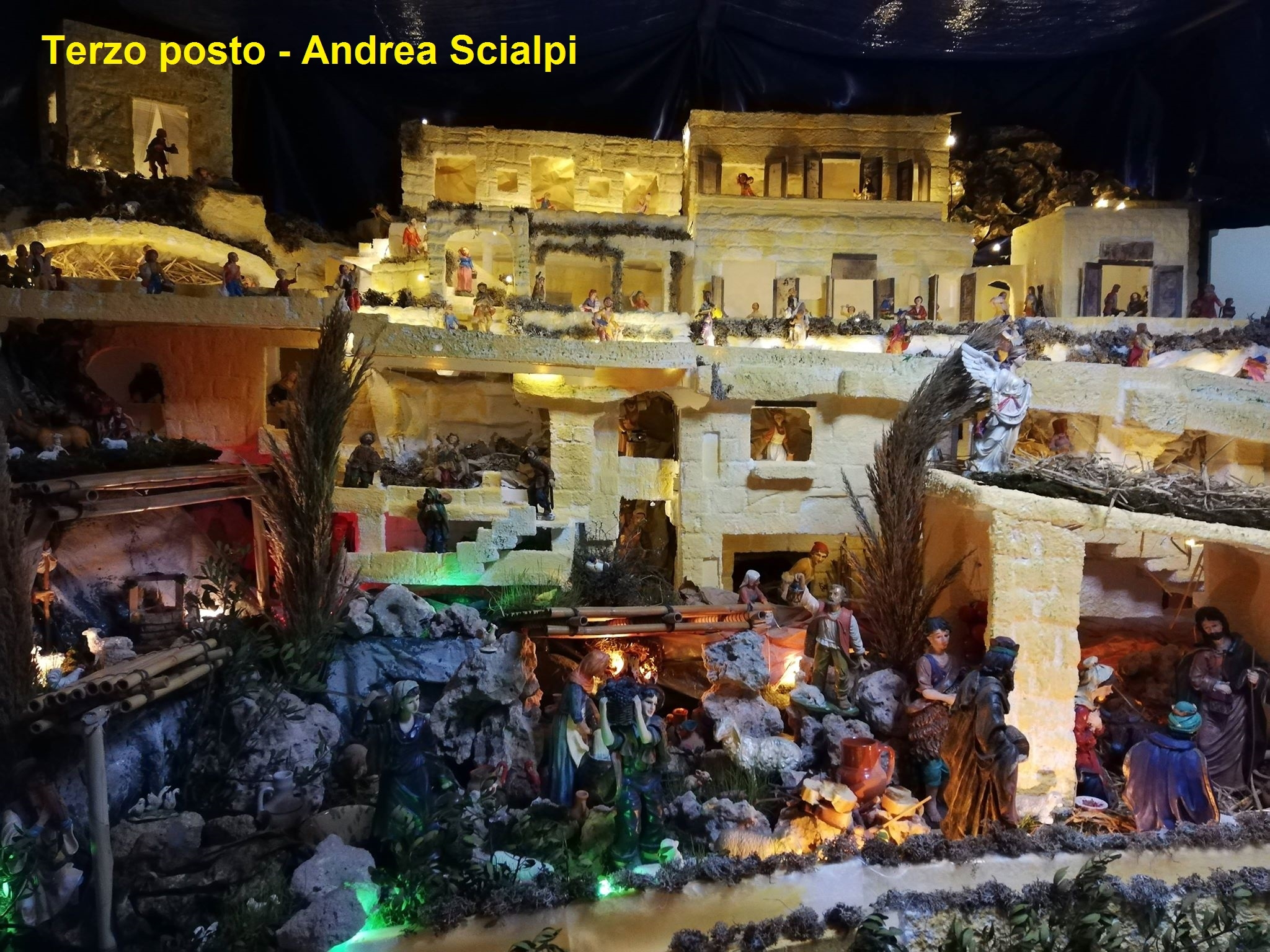 La proiezione delle foto ha preceduto la premiazione del presepe che, nella prima categoria dei privati ha visto quale primo classificato, quello di NICOLA TRIPALDI, riconosciuto come il più elaborato tecnicamente e artisticamente per la meaestosità e l’artigianalità. Secondo classificato è il presepe della famiglia BRUNETTI_MICCOLI, il cui presepe è molto curato nei dettagli, di notevoli dimensioni e può vantare una ricostruzione minuziosa. Accurata è inoltre la rievocazione di un abitato palestinese. Terzo classificato la creazione di ANDREA SCIALPI per l’accuratezza e la particolarità dell’anfora da cui sgorga davvero il vino inondando la stanza del caratteristico profumo.