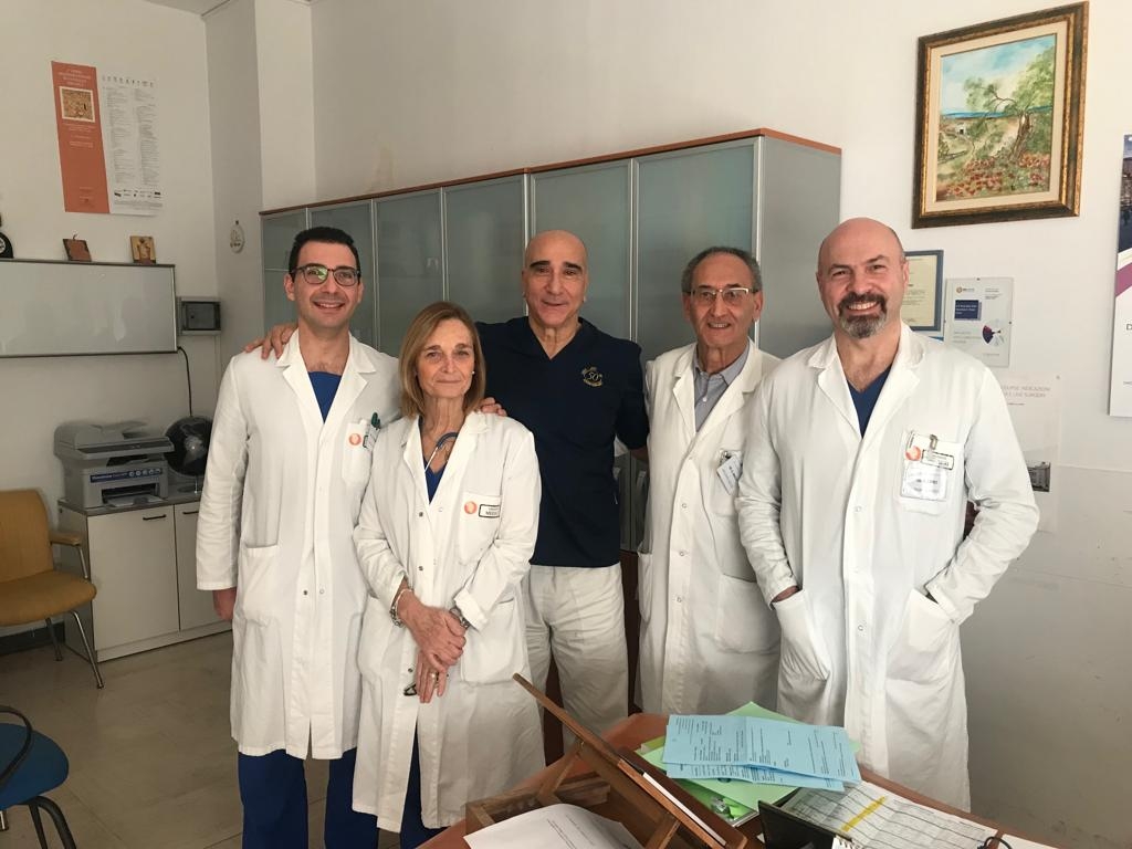 L’équipe, costituita dal direttore dell’Unità Operativa Gaetano Di Rienzo e dai dottori Camillo Lopez e Gaetano Greco, anestesista Paola Torsello, infermiere anestesista Stefano Perrone, infermieri di sala operatoria Alessandra Erroi, Barbara Mongelli, Edelweiss Gaetani, ha asportato il polmone sinistro in videotoracoscopia attraverso due incisioni (una di 2 cm, l’altra di 4 cm di lunghezza), quindi senza apertura del torace con divaricatore costale, inserendo gli appositi strumenti attraverso gli spazi intercostali corrispondenti alle due incisioni cutanee e con visione operativa al monitor.