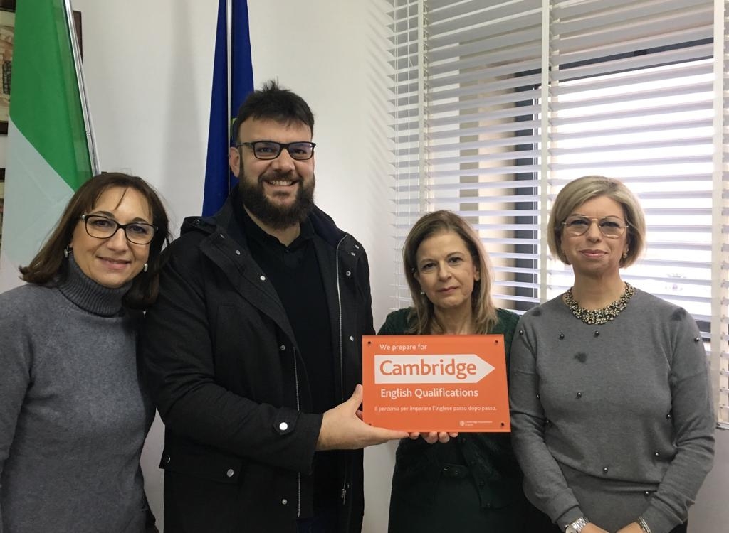 Le statistiche pubblicate da Cambridge riguardanti gli esiti degli studenti del liceo “De Sanctis Galilei” evidenziano che più della metà degli alunni ha conseguito competenze superiori rispetto al livello dell’esame sostenuto. I risultati ottenuti documentano lo zelo, la costanza e la passione degli studenti liceali che si sono cimentati nelle prove, ma riflettono allo stesso tempo la competenza e il rigore didattico-metodologico dei docenti che seguono gli allievi nella preparazione, supportati dalla prof.ssa Concetta Magda Bucci, referente di istituto per le certificazioni linguistiche. Cambridge ha così voluto onorare e premiare il liceo “De Sanctis Galilei” per l’impegno profuso, conferendo la prestigiosa targa onoraria di Cambridge English Exam Preparation Centre, consegnata ufficialmente al dirigente scolastico Maria Maddalena Di Maglie, da parte di Giuseppe Porro, collaboratore della scuola Accento LIC di Martina Franca, Centro Cambridge di riferimento per il liceo manduriano.