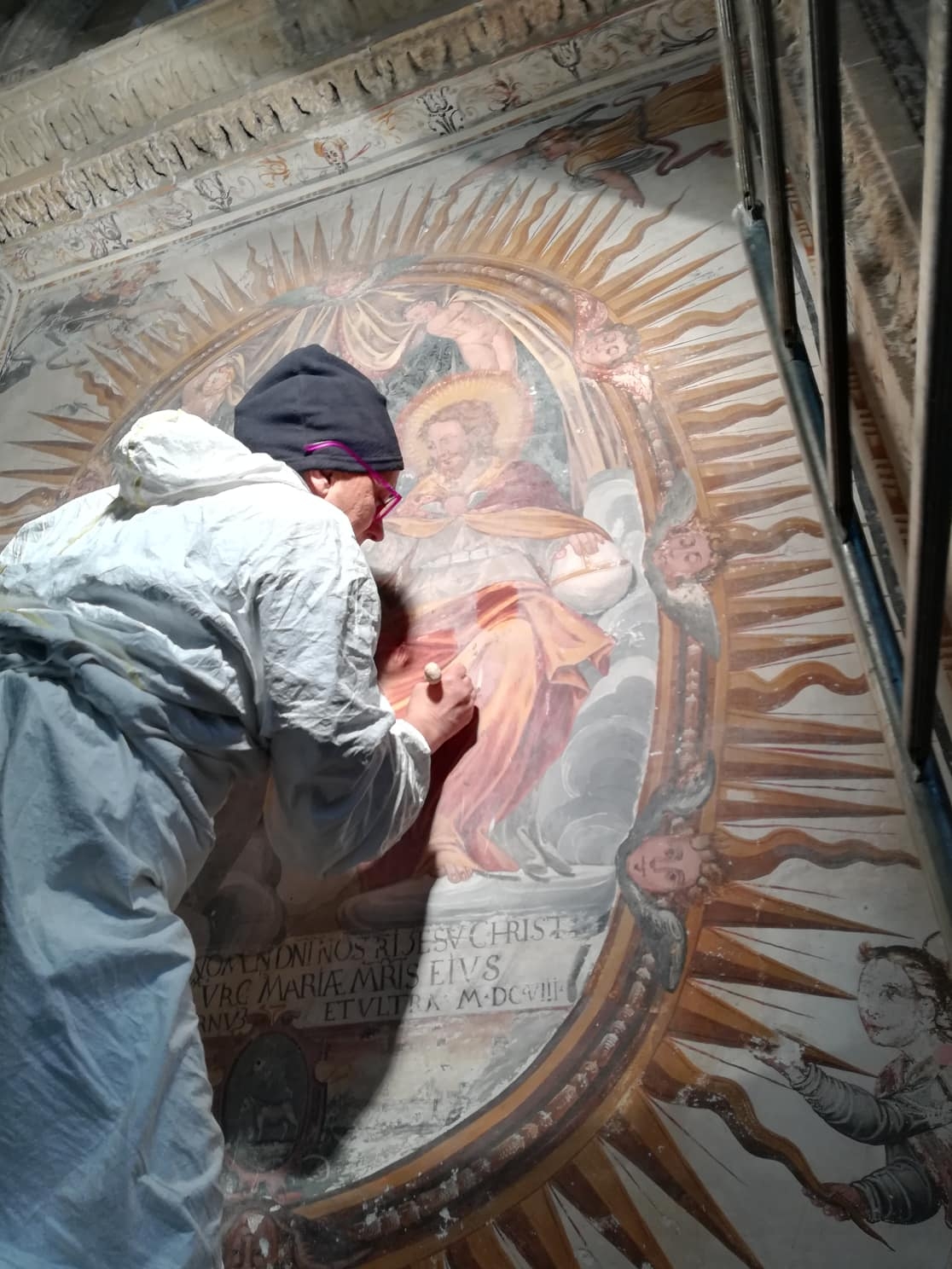Avviati i lavori di restauro dell’affresco raffigurante la Vergine e Gesù in gloria, che,