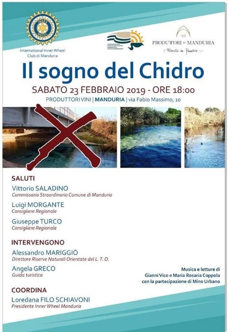 Grazie all’iniziativa dell’Inner Wheel di Manduria, sarà presentato il progetto di rinaturalizzazione dell’area del fiume Chidro