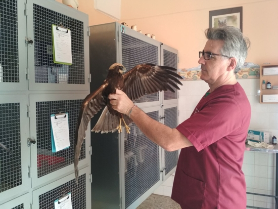 Nelle foto: il dott. Fontana con un Falco di Palude e un Grillaio ferito ricoverato nel Centro