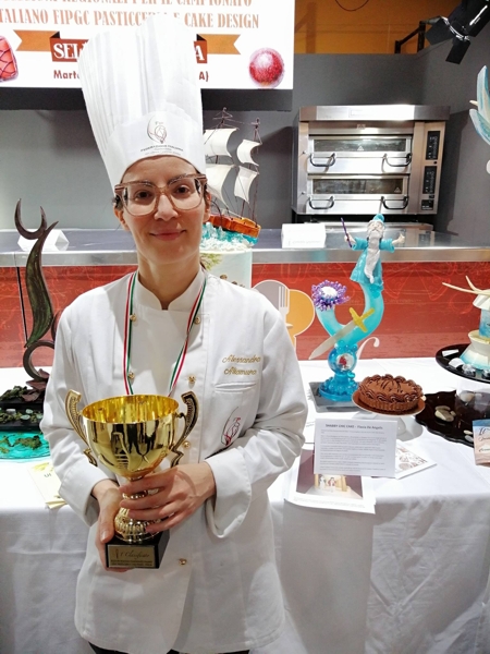 Sotto la guida di Giuseppe Russi, già campione del mondo Host 2017, la giuria ha premiato come campionessa regionale di Zucchero Artistico e Pasticceria, la pasticcera e cake designer Alessandra Altamura, che, cimentatasi con lo zucchero artistico, ha realizzato un’opera ottenuta lavorando lo zucchero come fosse fine cristallo per dar forma ad una scultura dal titolo “La Spada nella Roccia”, nonché presentando una gustosa torta che ripropone gli ingredienti e sapori tipici della colazione italiana dal titolo “dolce risveglio”.