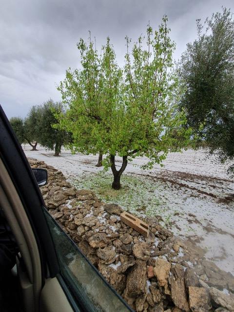 «La grandinata di inusitata violenza, con epicentro tra Crispiano, Grottaglie e Martina Franca, ha colpito oliveti e vigneti, compromettendone in alcuni casi i germogli. Si sono formate in campagna delle vere e proprie lastre di ghiaccio e quando le aree rurali saranno nuovamente accessibili si potrà procedere con le verifiche in campo per accertare il danno effettivo», denuncia il presidente di Coldiretti Taranto, Alfonso Cavallo.