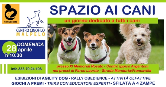 Domenica mattina, 28 aprile, il centro cinofilo MALPELO di Maruggio organizza l’evento “Spazio ai cani” e a tutti quelli che li adorano!