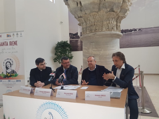 Il corpo delle due Sante - custodito nelle teche di cristallo - giungerà in città mercoledì 24 aprile dando il via ad una serie di festeggiamenti civili e religiosi che si concluderanno il prossimo 4 maggio . E’ un’occasione unica per la comunità di Erchie che è pronta a stringersi attorno alla sua Santa Patrona (Irene) e alla sua Protettrice (Lucia) per ricordare e accompagnare questo storico momento. "Sembra quasi che questo incontro tra le due sante – ha sottolineato don Pietroronzo Cinieri, Rettore del Santuario di Santa Lucia di Erchie - sia stato già pensato nel momento in cui vennero costruite le due Chiese ad esse intitolate e che, nella piazza di Erchie, si trovano in posizione frontale, come se volgessero lo sguardo l'una verso l'altra. Questo è un momento che possiamo definire storico, in cui la comunità di Erchie può anche ritrovare il senso della fede".