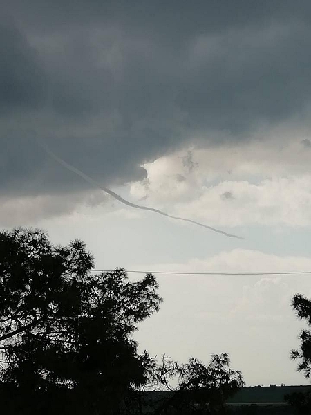 Invece, nel cielo fra San Marzano e Grottaglie, come si vede dalla foto, si è formato un funnel cloud, una nube a forma di cono o imbuto che pian piano scende verso il suolo ma che effettivamente non lo tocca mai, non producendo alcun danno.