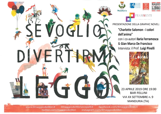 La graphic novel “Charlotte Salomon, i colori dell’anima” sarà raccontata dai co-autori Ilaria Ferramosca (per la regia) e Gian Marco De Francisco (per le illustrazioni) intervistati dal prof. Luigi Pinelli, così come lei stessa, ai giorni nostri, avrebbe amato raccontarla: con una forma d’arte dinamica, quasi multimediale. I personaggi di questa biografia si muovono sulla pagina, e negli spazi dai bordi sfumati, con lo stesso dinamismo voluto e ricercato anche da Charlotte nei suoi dipinti, suggerendo musiche di sottofondo, facendo danzare i protagonisti sulla carta come sopra a un palcoscenico. E’ senza dubbio una storia di grande attualità, sia dal punto di vista storico, che umano in quanto i semi dell’odio proliferano ancora anche attraverso le moderne leggi razziali ed in tutti i nazionalismi portati all’estremo e nei patti scellerati con le nazioni in cui esistono veri e propri lager dove ad essere relegati e torturati oggi sono i migranti.