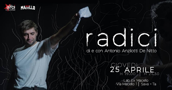 Su iniziativa del circolo Arci Calypso di Sava, l’attore e autore latianese presenterà il suo progetto teatrale, per la prima volta in Puglia, sul palco del Lab ExMacello di Sava, giovedi 25 aprile in un doppio spettacolo (ore 19 e ore 21:30).