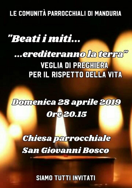 “Beati i miti… erediteranno la terra”: questo il tema della veglia, promossa da tutte le comunità parrocchiali di Manduria