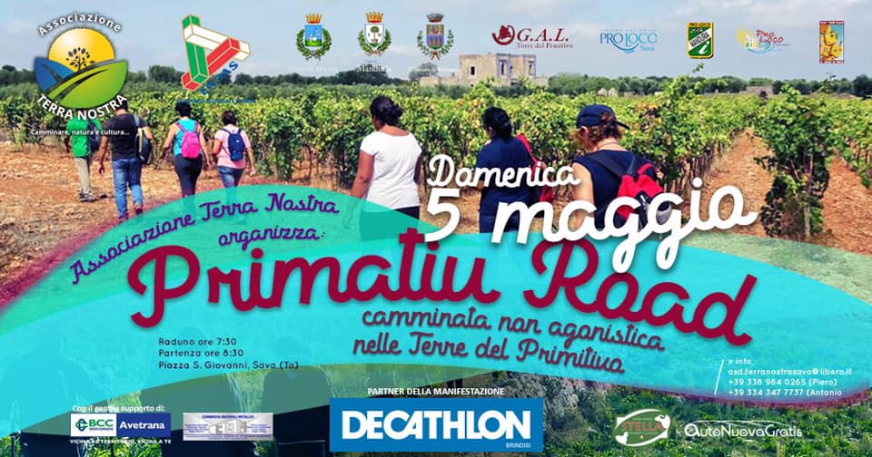 «Domenica prossima vogliamo far conoscere il nostro territorio a tanta gente nuova» fanno sapere gli organizzatori. «Abbiamo preparato un itinerario molto interessante, che si snoderà tra uliveti, macchia mediterranea e vigneti: attraverseremo i territori dei comuni di Sava, Maruggio e Manduria. La risposta è stata straordinaria. In pochi giorni abbiamo raggiunto il tetto massimo delle iscrizioni: 200. Al “Primatiu Road” di domenica parteciperà anche gente di Bari, Altamura, San Giovanni Rotondo, Oria, Francavilla, oltre che della nostra provincia».