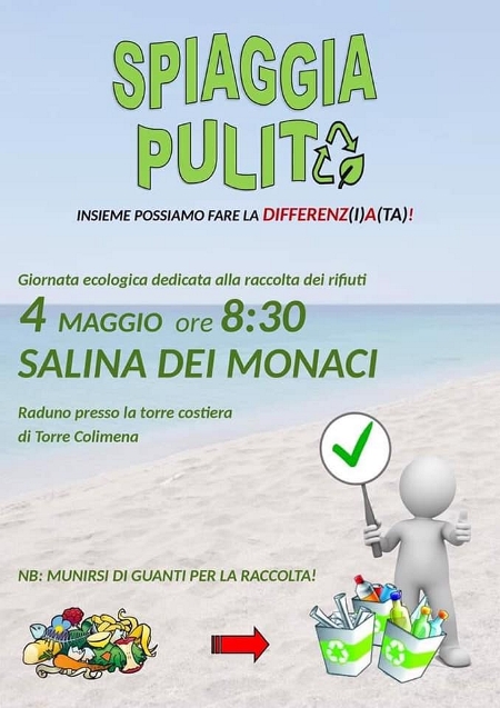 «L’ambiente è una questione di tutti…» è riportato in una nota degli organizzatori. «Tocca a noi pulire ciò che noi stessi sporchiamo. Ci vediamo alle 8:30 vicino alla torre saracena di Torre Colimena. Dobbiamo portare con noi solo un paio guanti!».