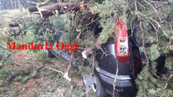 A poco più di sei mesi dalla tromba d’aria che ha causato notevoli danni, a Manduria, ieri pomeriggio, un violento vortice d’aria ha sradicato tre secolari alberi di pino. Uno di loro è caduto su un’auto parcheggiata nella campagna limitrofa. Fortunatamente il proprietario non era nell’abitacolo.
