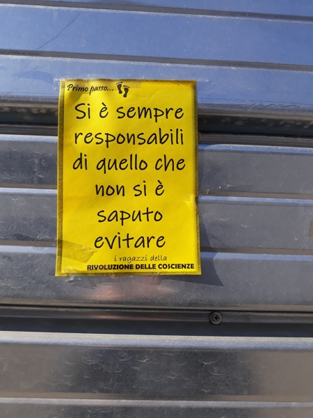 Una lezione che arriva dai ragazzi di Manduria. Ragazzi che si firmano come “Ragazzi della Rivoluzione delle Coscienze” e che propongono, stamani, una serie di messaggi su cartoncini colorati. Centinaia di questi cartoncini sono stati affissi nei pressi delle scuole e nel centro della città.