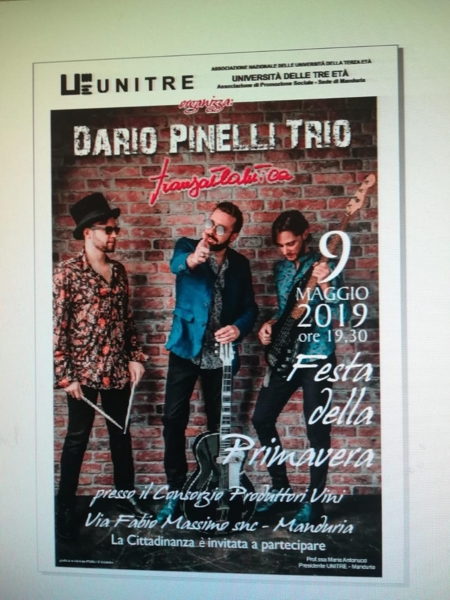 Il Dario Pinelli Trio protagonisti del Concerto di Primavera 2019 organizzato per la fine dell'Anno Accademico 2018/2019 da Unitre Università delle Tre Età di Manduria.