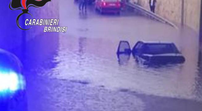 Una coppia di anziani intrappolata in un sottopassaggio a San Pietro Vernotico, sommersa da una bomba d'acqua, è stata salvata da una pattuglia dei carabinieri. L'allarme è stato lanciato da un cittadino che dopo un improvviso acquazzone sulla città ha notato la vettura intrappolata nel sottopassaggio ferroviario di via Lecce.