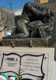 Dopo quattro anni, si è reso necessario ripristinare la base del monumento, che rappresenta una donna accasciata in lacrime, china su stessa, disperata dopo aver appreso della morte di un suo caro in un incidente sul posto di lavoro; una donna di cui non si vede il viso, come a voler rappresentare tutte le madri e le mogli che non hanno visto tornare a casa dal lavoro il figlio o il marito. Accanto a lei un’incudine, un martello e una tenaglia: gli strumenti di quel lavoro che rappresenta il sostentamento per la famiglia, ma troppe volte anche la causa di una morte improvvisa.