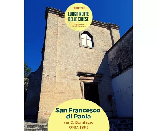 Luogo scelto per rappresentare la Diocesi in questa importante iniziativa è la chiesa parrocchiale di San Francesco di Paola in Oria con la cripta di San Barsanofio (via Dragonetti Bonifacio).