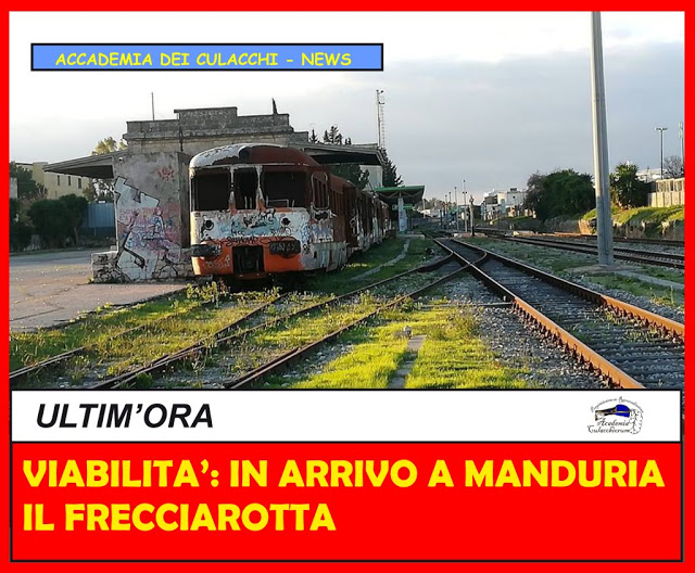 Dalla premiata Accademia dei Culacchi una novità per il mondo dei trasporti, in particolare quello che riguarda Manduria: assegnato alla nostra stazione ferroviaria il “Frecciarotta”. Un beneficio, chiaramente, solo ed esclusivo per la stazione di Manduria, come si può vedere dalla foto della vignetta.