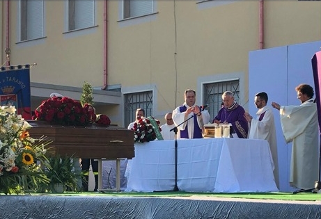 «Chiedo per rispetto alla famiglia di Mimmo e per tutti noi che si faccia chiarezza e giustizia. Vorrei gridare ancora una volta: basta morti; si lavora per vivere, non per morire». Così l’arcivescovo di Taranto, Filippo Santoro, nell’omelia dei funerali di Mimmo Massaro, l’operaio di ArcelorMittal morto il 10 luglio precipitando in mare con la gru sulla quale lavorava, colpita dalla tromba d’aria che infuriava in città. La cerimonia funebre si è svolta in piazza Toniolo, a Fragnagnano, paese d’origine della vittima.
