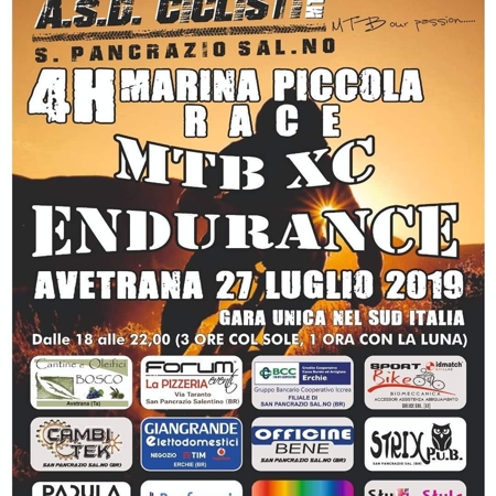 “4ore Marina Piccola XC Avetrana”: non é la solita endurance. Le salite, le discese e il percorso in generale la fanno somigliare più ad una gran fondo che ad una endurance vera e propria. 90 metri di dislivello e 7 km a giro si faranno a sentire nelle gambe.