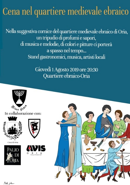Il Rione Judea di Oria organizza la tradizionale cena medievale che quest’anno prende il dome di: “Cena nel quartiere medievale ebraico”. che si terrà giovedì 1 agosto, per le vie del centro storico e del quartiere ebraico.