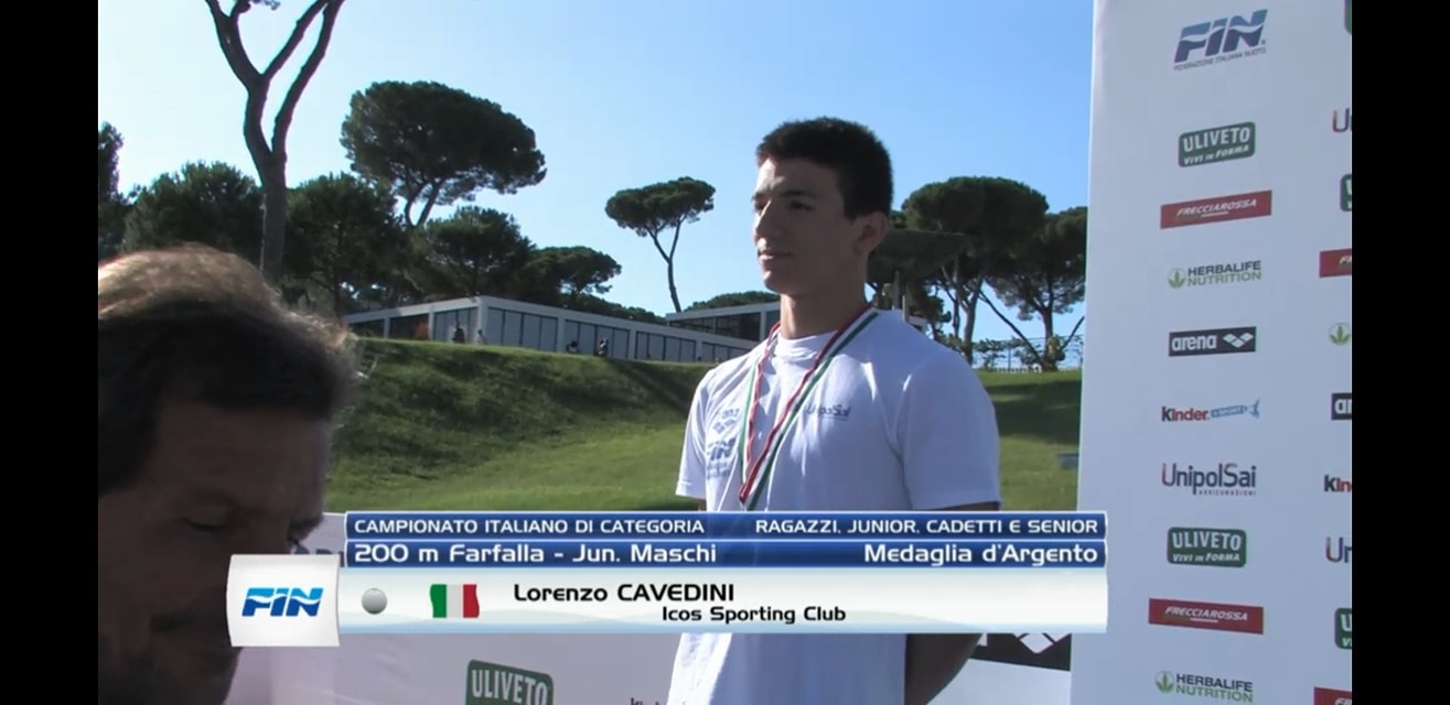 Lorenzo Cavedini vice campione italiano della categoria juniores nella gara dei 200 farfalla.