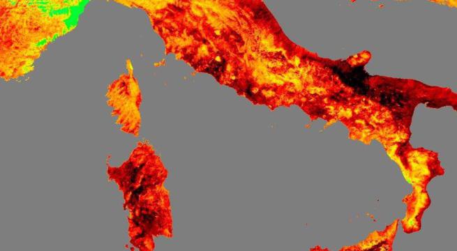 Un'ondata di caldo rovente si sta abbattendo su tutta l’Italia, in particolare in Puglia la temperatura della superficie terrestre ha superato i 50 gradi. Tra le aree più colpite anche Sicilia, Sardegna e alcuni punti di Campania, Lazio, Toscana e Marche. A denunciarlo sono le immagini dell’Italia afflitta dall'afa catturate dal satellite Sentinel 3 del programma Copernicus, di Agenzia Spaziale Europea (Esa) e Commissione Ue.