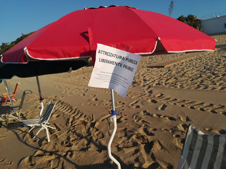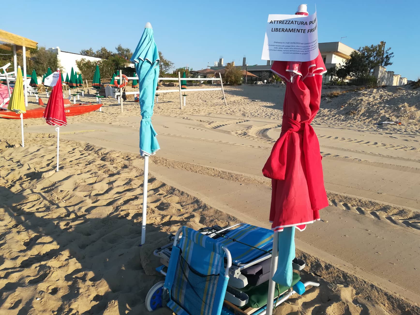 Stamani, a ricordare ai furbetti questa violazione dell’ordinanza e delle leggi, ci ha pensato un anonimo (o forse più di uno), il quale ha attaccato su ogni ombrellone posizionato sin dall’alba nei pressi del bagnasciuga, nel tratto di spiaggia compreso fra la discesa della strada del bar Firenze sino al lido MoMà) un cartello con il quale si ricorda che la spiaggia è un luogo liberamente fruibile da tutti e non solo dai “furbetti”.