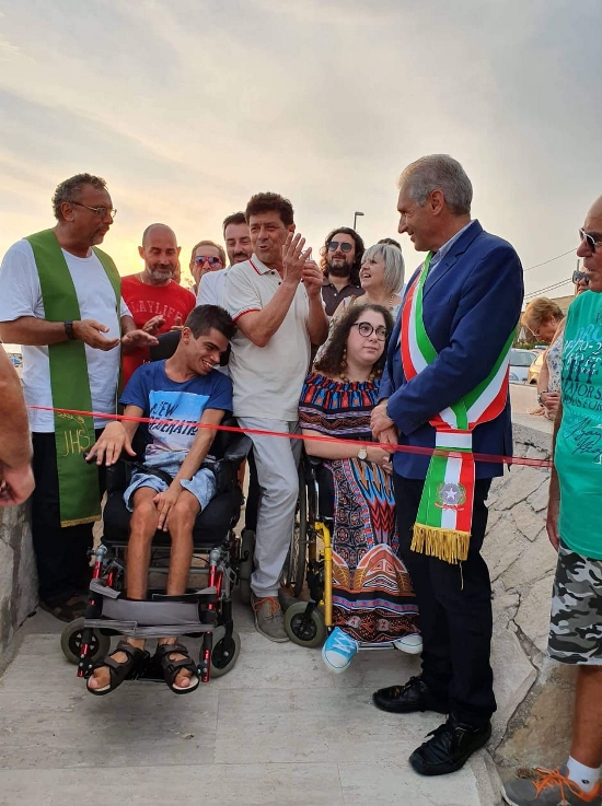 Inaugurata una nuova passerella per diversamente abili in un tratto di spiaggia libera di Torre Ovo. La nuova passerella è dotata anche di servizi igienici senza barriere architettoniche e può disporre, nei pressi dall’area prescelta per questo intervento, di una piazzola per la sosta delle carrozzine