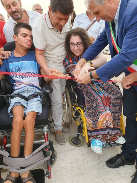 Il taglio del nastro è stato affidato a due ragazzi con diverse abilità, Gabriele e Serena, quest'ultima assessore alle Politiche Sociali del Comune di Fragagnano. Alla cerimonia hanno partecipato il sindaco di Torricella Michele Schifone, il consigliere regionale Giuseppe Turco, altri amministratori di Torricella, i rappresentanti delle associazioni del posto (in particolare dell’associazione “I Delfini Jonici”, che durante tutta l’estate 2019 hanno svolto il servizio di assistenza gratuitamente per la marina di Torricella). .