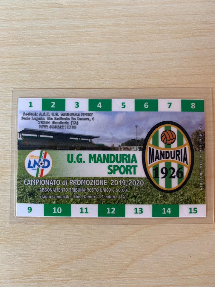 La società U. G. Manduria comunica che è partita ufficialmente la vendita degli abbonamenti. Il singolo abbonamento ha un costo di 50 euro.