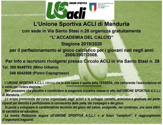 Il corso è gratuito. A carico dei giovani calciatori solo il costo della tessera, che comprende la quota per l’assicurazione