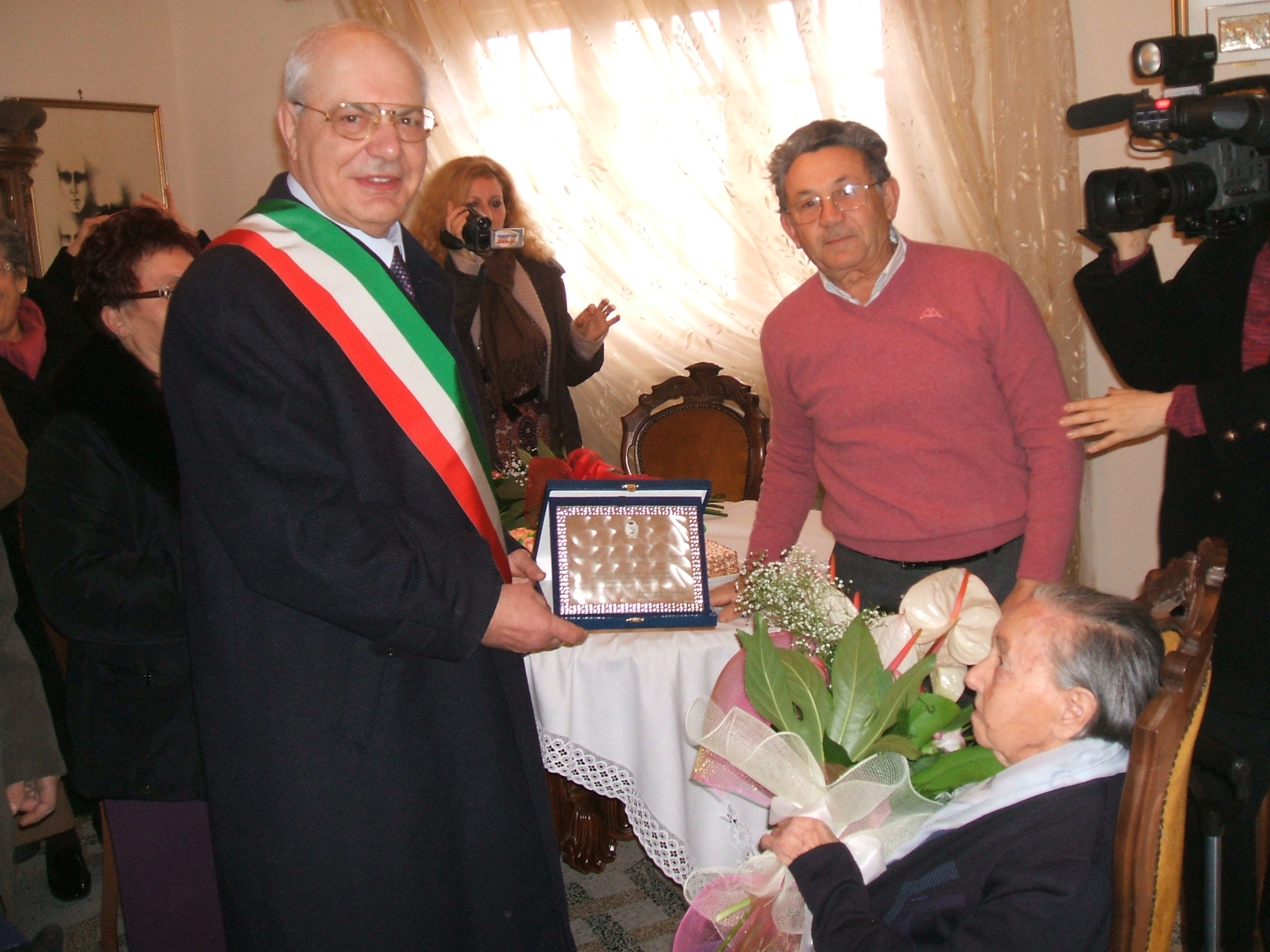di Manduria, dott. Giovanni D’Onofrio, ha nobilitato i festeggiamenti di un’altra centenaria: la signora Maria Addolorata D’Abramo. Attorniata dai quattro figli (Assunta, Pietro, Antonio e Cosimo Leone), dagli undici nipoti e dai dodici pro-nipoti, la signora Maria Addolorata, lucida e abbastanza autosufficiente, ha festeggiato il suo primo secolo di vita.