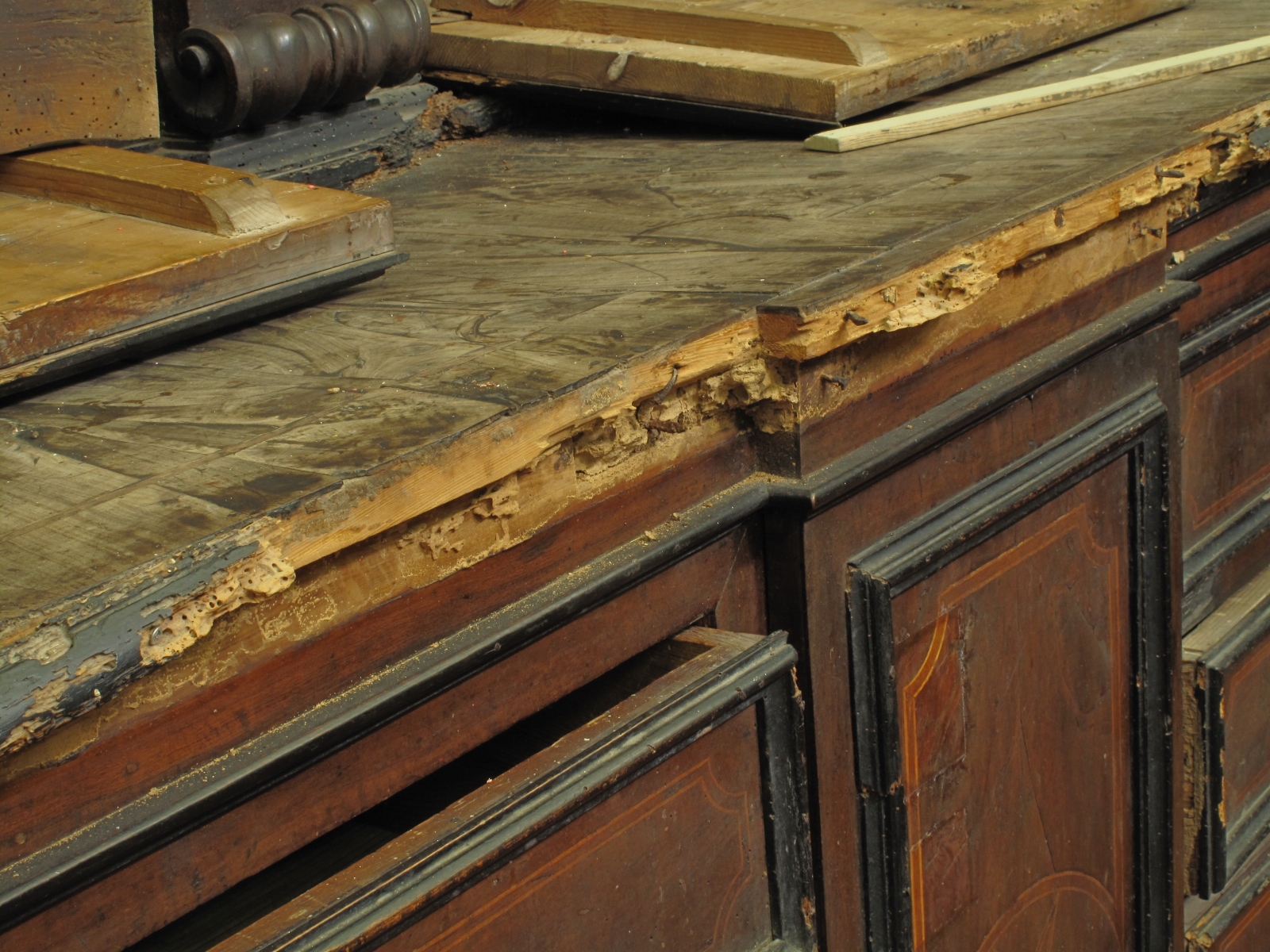 Sì trattava di bloccare l’azione del tarlo e di altri agenti che stavano attaccando la superficie lignea. L’intervento fu finanziato dalla presidenza del Consiglio provinciale, carica allora ricoperta da Francesco Massaro.